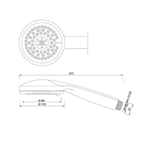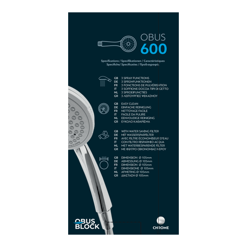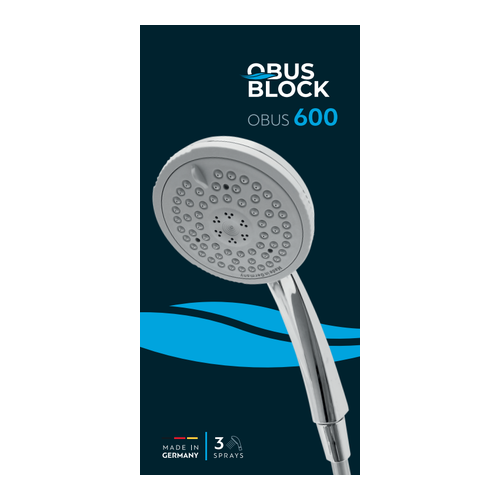 The shower handset Obus 600 offers a combination of modern aesthetics and practical functionality, with the guarantee of German manufacturing. It has 3 spray modes to choose the flow that suits you, a water-saving filter to reduce consumption without losing performance and an easy-cleaning system to remove limescale. With a diameter of Ø105 mm, it ensures a uniform and enjoyable experience in every use.